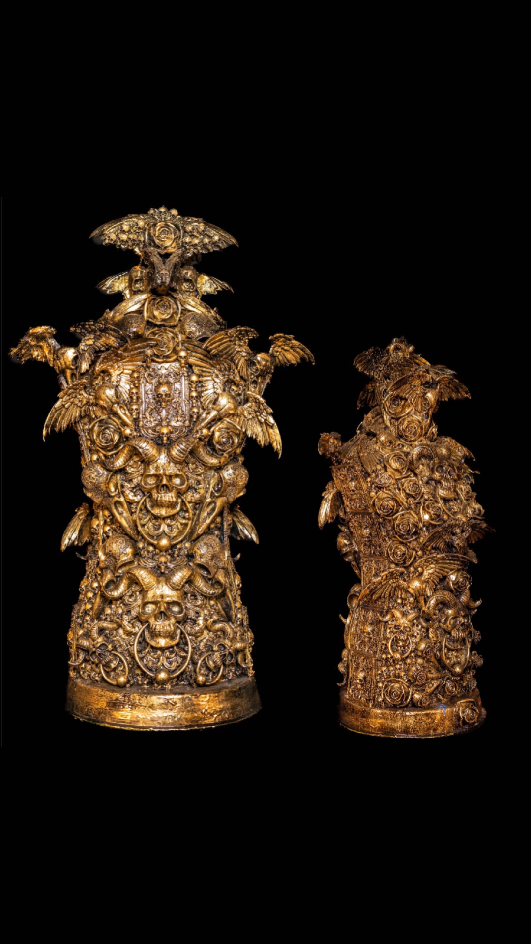Toutes mes œuvres sont réalisées en résine ou plâtre sur supports en bois.